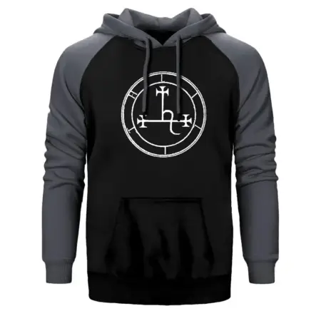 • Sigil Of Lilith Hoodie, Double Color Raglan Sleeve Gray Sweatshirt