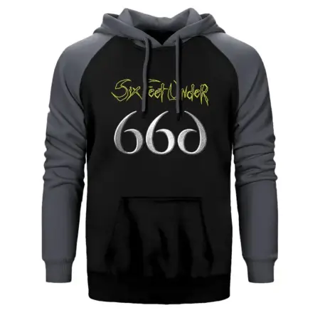 • Six Feet Under 666 Hoodie, Double Color Raglan Sleeve Gray Sweatshirt