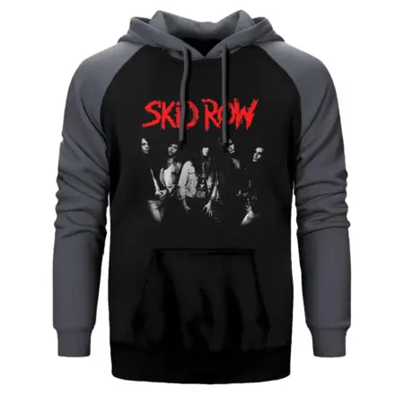 • Skidrow Hoodie, Double Color Raglan Sleeve Gray Sweatshirt