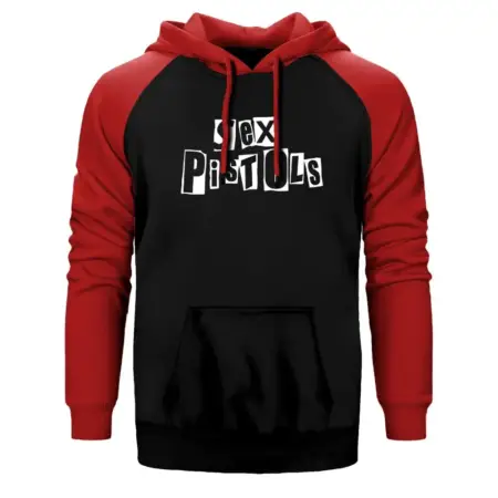 • Sex Pistols Hoodie, Double Color Raglan Sleeve Red Sweatshirt