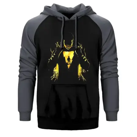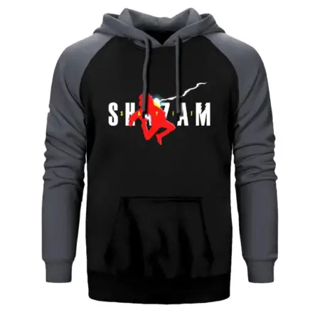 • Shazam Logo Hoodie, Double Color Raglan Sleeve Gray Sweatshirt