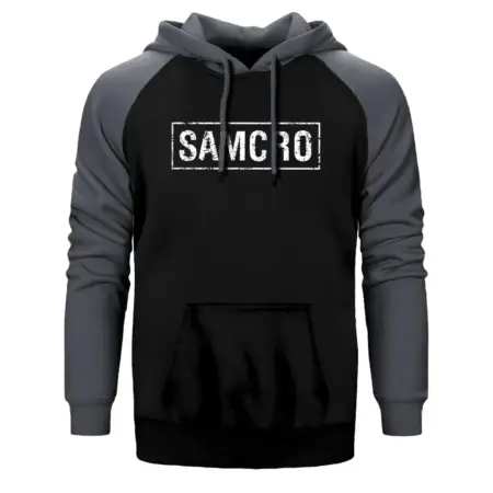 • SAMCRO Hoodie, Double Color Raglan Sleeve Gray Sweatshirt