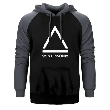 • Saint Asonia Hoodie, Double Color Raglan Sleeve Gray Sweatshirt