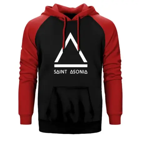 • Saint Asonia Hoodie, Double Color Raglan Sleeve Red Sweatshirt