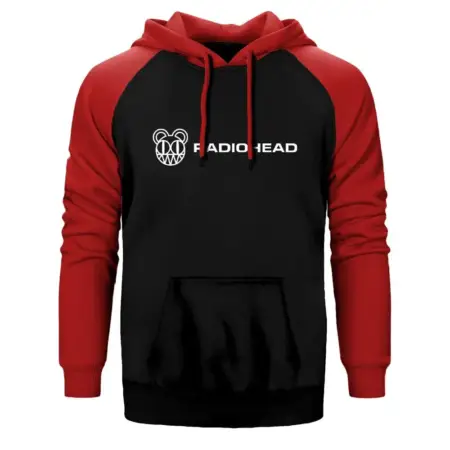 • Radiohead Logo Hoodie, Double Color Raglan Sleeve Red Sweatshirt