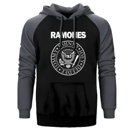 • Ramones Band Hoodie, Double Color Raglan Sleeve Gray Sweatshirt
