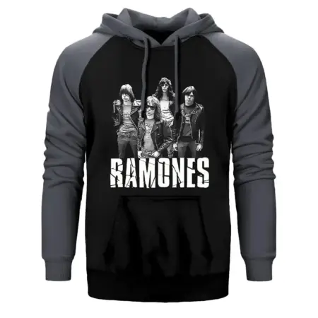 • Ramones BW Hoodie, Double Color Raglan Sleeve Gray Sweatshirt
