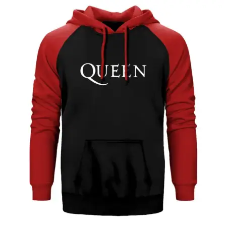 • Queen Logo Hoodie, Double Color Raglan Sleeve Red Sweatshirt