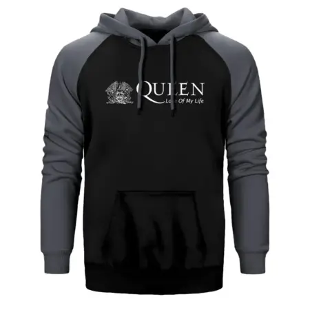 • Queen Love Of My Life Hoodie, Double Color Raglan Sleeve Gray Sweatshirt