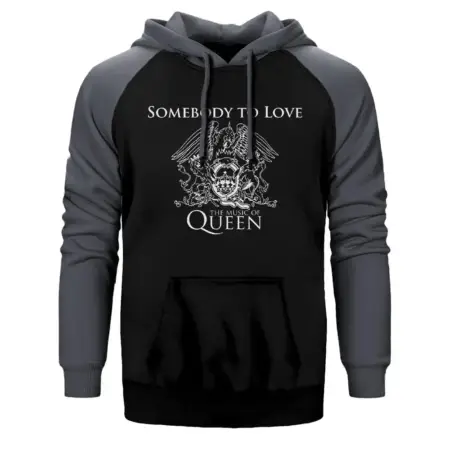 • Queen Somebody to Love Hoodie, Double Color Raglan Sleeve Gray Sweatshirt
