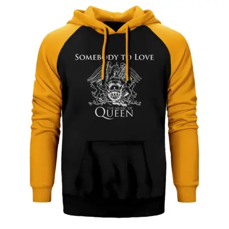 • Queen Somebody to Love Hoodie, Double Color Raglan Sleeve Yellow Sweatshirt