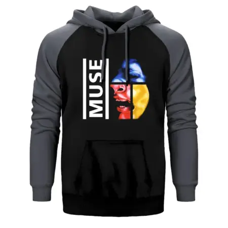 • Muse 1998 Album Cover Hoodie, Double Color Raglan Sleeve Gray Sweatshirt