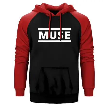 • Muse Songs Logo Hoodie, Double Color Raglan Sleeve Red Sweatshirt