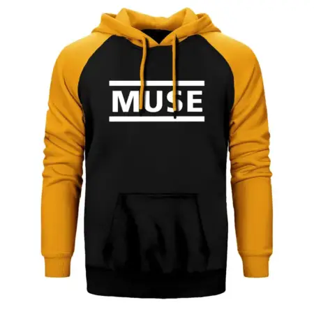 • Muse Songs Logo Hoodie, Double Color Raglan Sleeve Yellow Sweatshirt