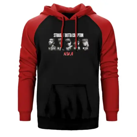 • N.W.A Straight Outta Compton Hoodie, Double Color Raglan Sleeve Red Sweatshirt