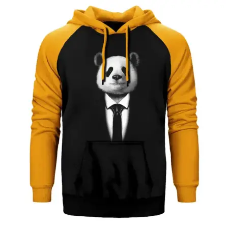 • Mr. Panda Hoodie, Double Color Raglan Sleeve Yellow Sweatshirt