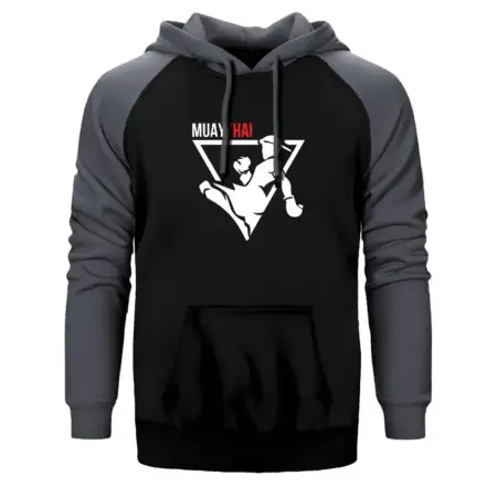 • Muay Thai Hoodie, Double Color Raglan Sleeve Gray Sweatshirt