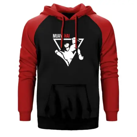 • Muay Thai Hoodie, Double Color Raglan Sleeve Red Sweatshirt