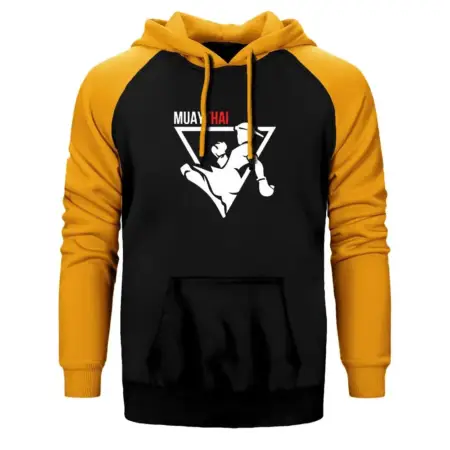 • Muay Thai Hoodie, Double Color Raglan Sleeve Yellow Sweatshirt
