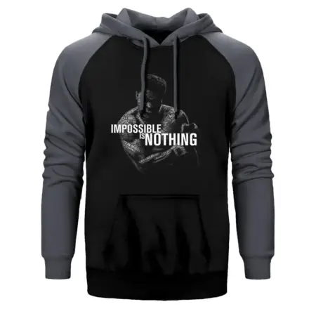 • Muhammad Ali Impossible is Nothing Hoodie, Double Color Raglan Sleeve Gray Sweatshirt