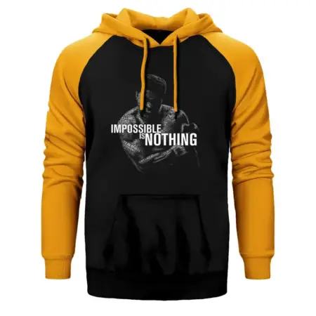 • Muhammad Ali Impossible is Nothing Hoodie, Double Color Raglan Sleeve Yellow Sweatshirt