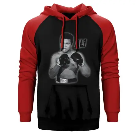 • Muhammad Ali Poster Hoodie, Double Color Raglan Sleeve Red Sweatshirt
