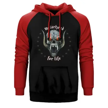 • Motörhead Skull For Life Hoodie, Double Color Raglan Sleeve Red Sweatshirt