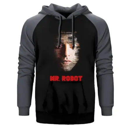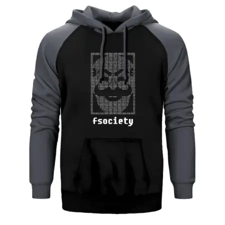 • Mr Robot Fsociety Binary Hoodie, Double Color Raglan Sleeve Gray Sweatshirt