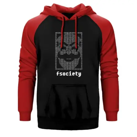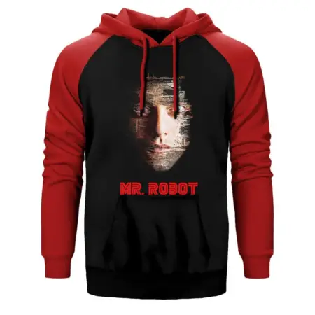 • Mr Robot Fsociety Binary Hoodie, Double Color Raglan Sleeve Red Sweatshirt
