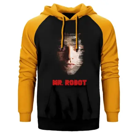 • Mr Robot Fsociety Binary Hoodie, Double Color Raglan Sleeve Yellow Sweatshirt