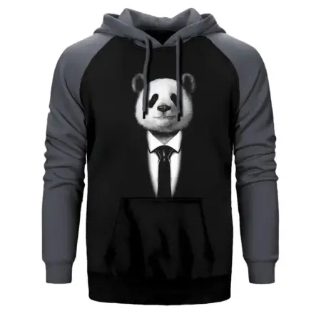 • Mr. Panda Hoodie, Double Color Raglan Sleeve Gray Sweatshirt