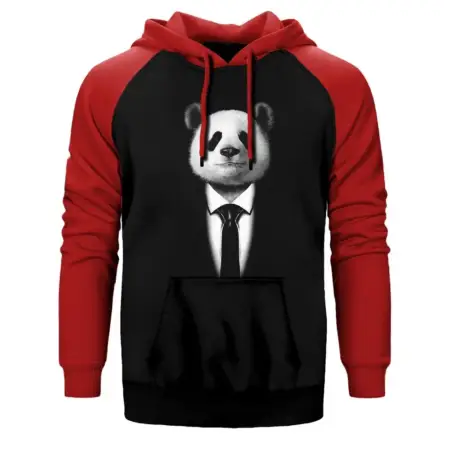 • Mr. Panda Hoodie, Double Color Raglan Sleeve Red Sweatshirt