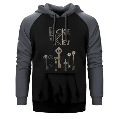 • Locke & Key Keys Hoodie, Double Color Raglan Sleeve Gray Sweatshirt