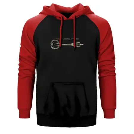 • Locke & Key This Key Hoodie, Double Color Raglan Sleeve Red Sweatshirt