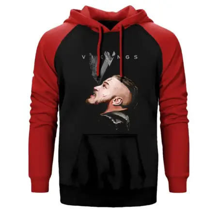 • Vikings Ragnar Hoodie, Double Color Raglan Sleeve Red Sweatshirt