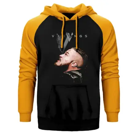 • Vikings Ragnar Hoodie, Double Color Raglan Sleeve Yellow Sweatshirt