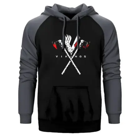 • Vikings Tools Hoodie, Double Color Raglan Sleeve Gray Sweatshirt