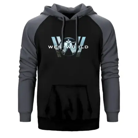 • WestWorld Hoodie, Double Color Raglan Sleeve Gray Sweatshirt