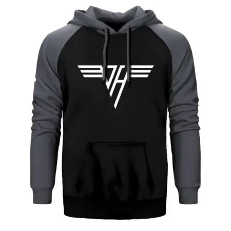 • Van Halen Logo Classic Hoodie, Double Color Raglan Sleeve Gray Sweatshirt
