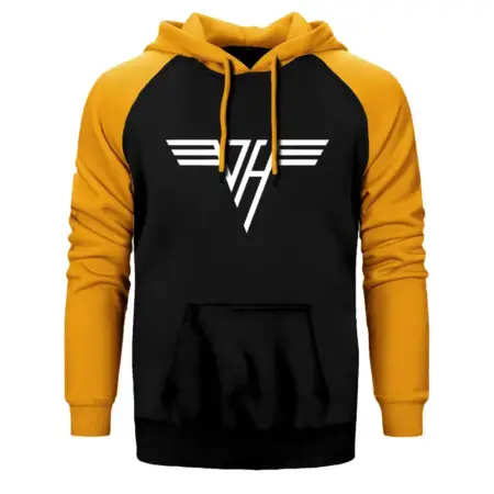 • Van Halen Logo Classic Hoodie, Double Color Raglan Sleeve Yellow Sweatshirt