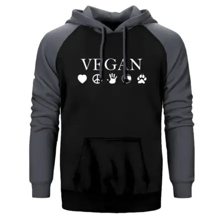 • Vegan Hoodie, Double Color Raglan Sleeve Gray Sweatshirt