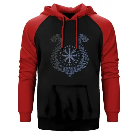 • Vikings Aegishjalmur Helm of Terror Hoodie, Double Color Raglan Sleeve Red Sweatshirt