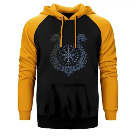 • Vikings Aegishjalmur Helm of Terror Hoodie, Double Color Raglan Sleeve Yellow Sweatshirt