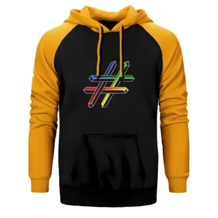 • Hashtag Hoodie, Double Color Raglan Sleeve Yellow Sweatshirt