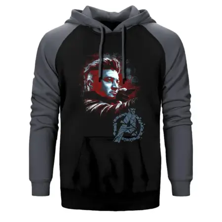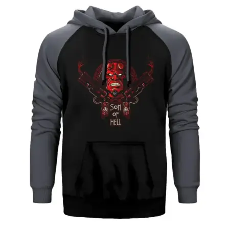 • Hellboy Sons of Hell Hoodie, Double Color Raglan Sleeve Gray Sweatshirt