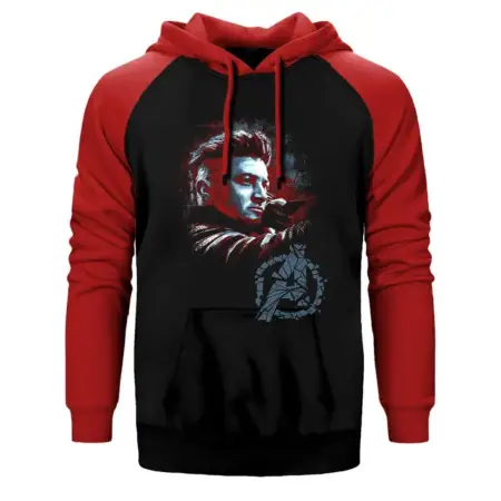 • Hellboy Sons of Hell Hoodie, Double Color Raglan Sleeve Red Sweatshirt