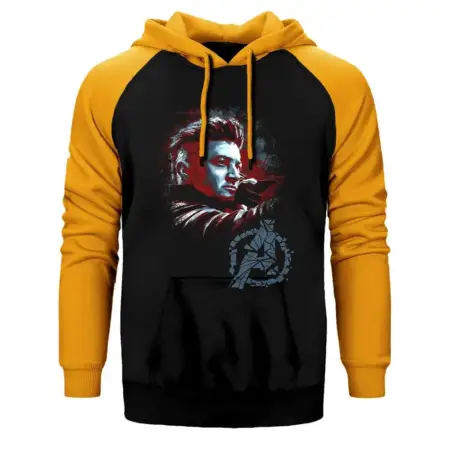 • Hawkeye Hoodie, Double Color Raglan Sleeve Yellow Sweatshirt