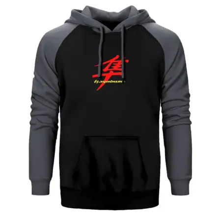 • Hayabusa Logo Hoodie, Double Color Raglan Sleeve Gray Sweatshirt