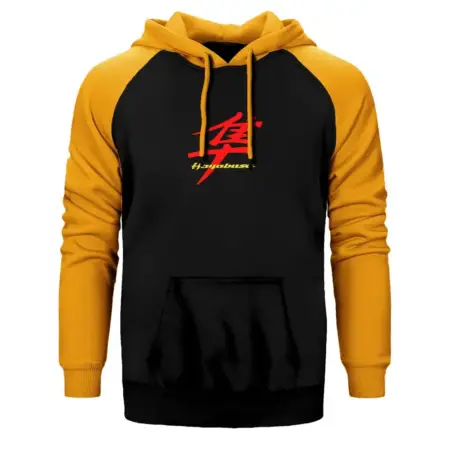 • Hayabusa Logo Hoodie, Double Color Raglan Sleeve Yellow Sweatshirt