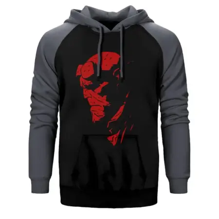 • HellBoy Face Hoodie, Double Color Raglan Sleeve Gray Sweatshirt
